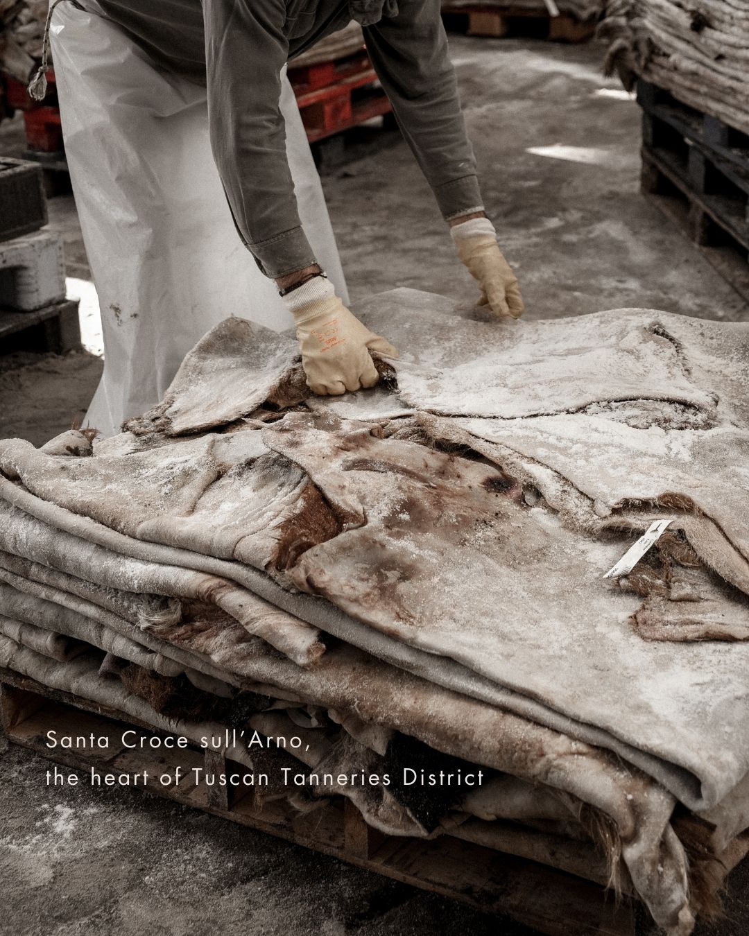 At the heart of Studio Flo lies the leather district of Santa Croce sull’Arno, a historic tanning area located in Tuscany, between Florence and Pisa. For centuries, this region has been renowned for its mastery in vegetable and chrome tanning, supplying leather to the world’s leading luxury houses. Rooted in artisanal know-how and constant innovation, the district represents a unique balance between tradition, technology, and environmental responsibility. Studio Flo works exclusively with selected tanneries from this area, transforming their finest leathers into long-lasting bags, entirely made in Florence.