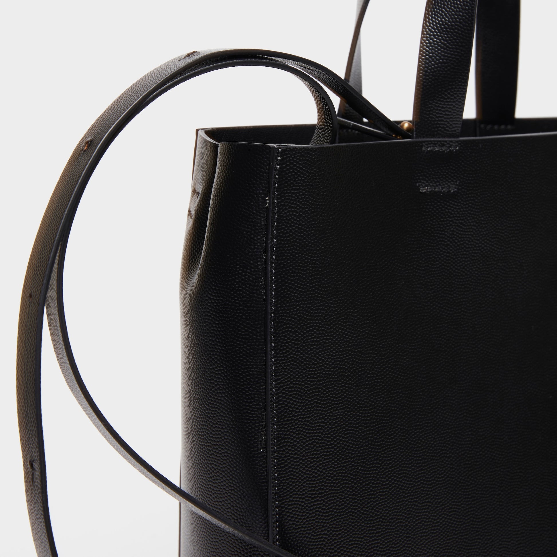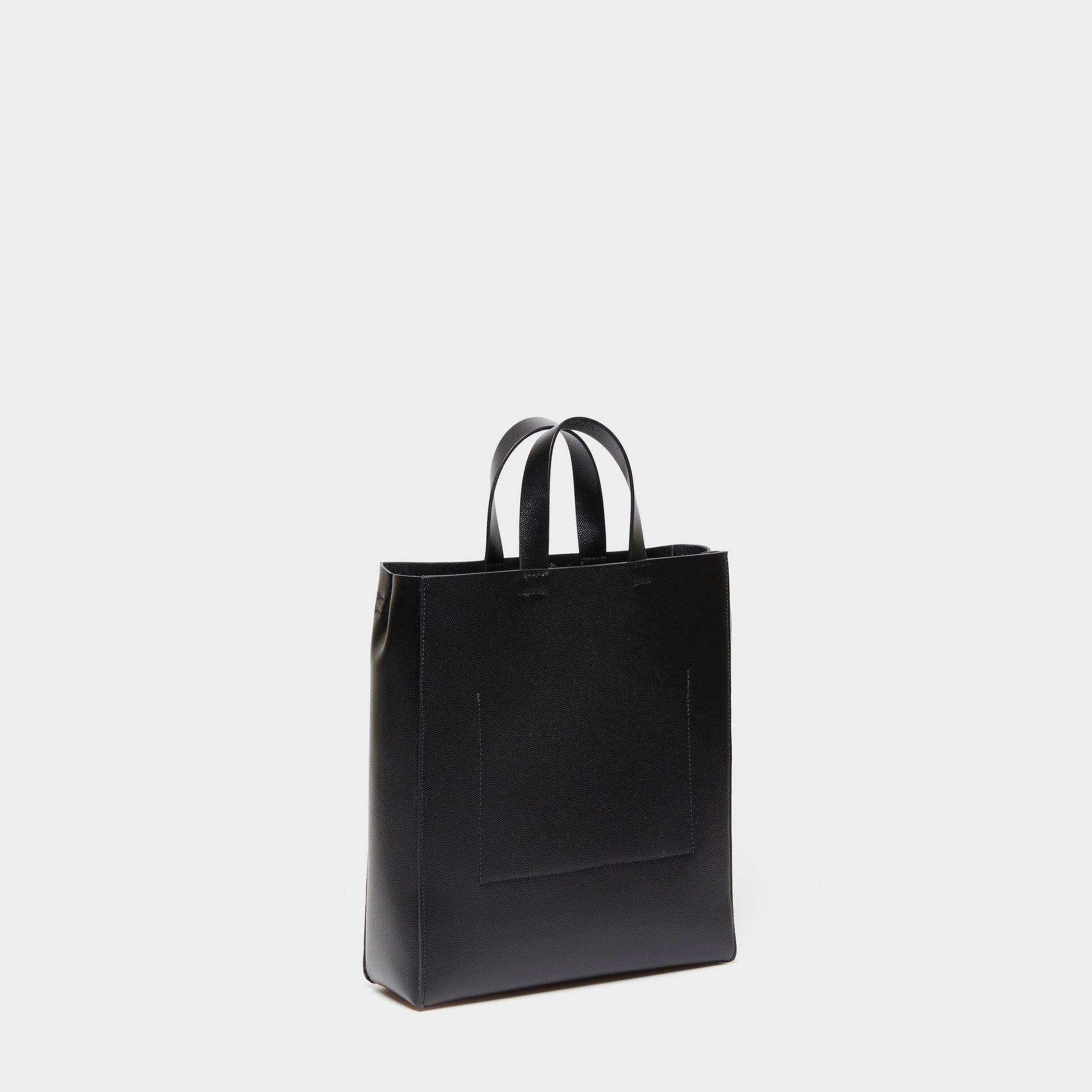 Handbag with adjustable strap made of calf leather, featuring a nappa leather interior and an open pocket.