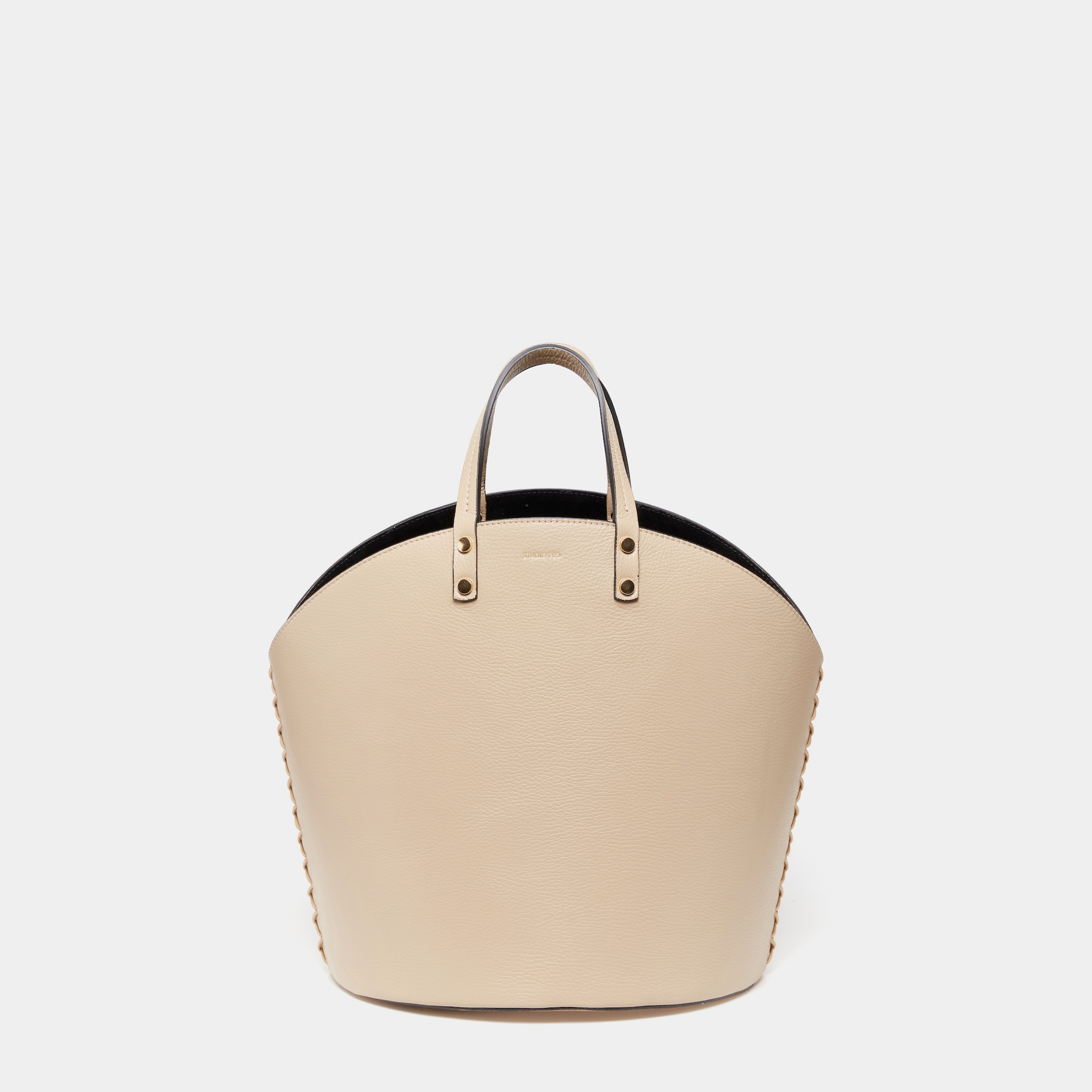A structured yet sophisticated carryall crafted in premium leather. Featuring a distinctive hand-woven leather detail along the side, this bag adds a refined twist to a minimalist silhouette. The spacious interior includes a practical pocket, while the soft microfibre lining ensures a lightweight, comfortable feel.