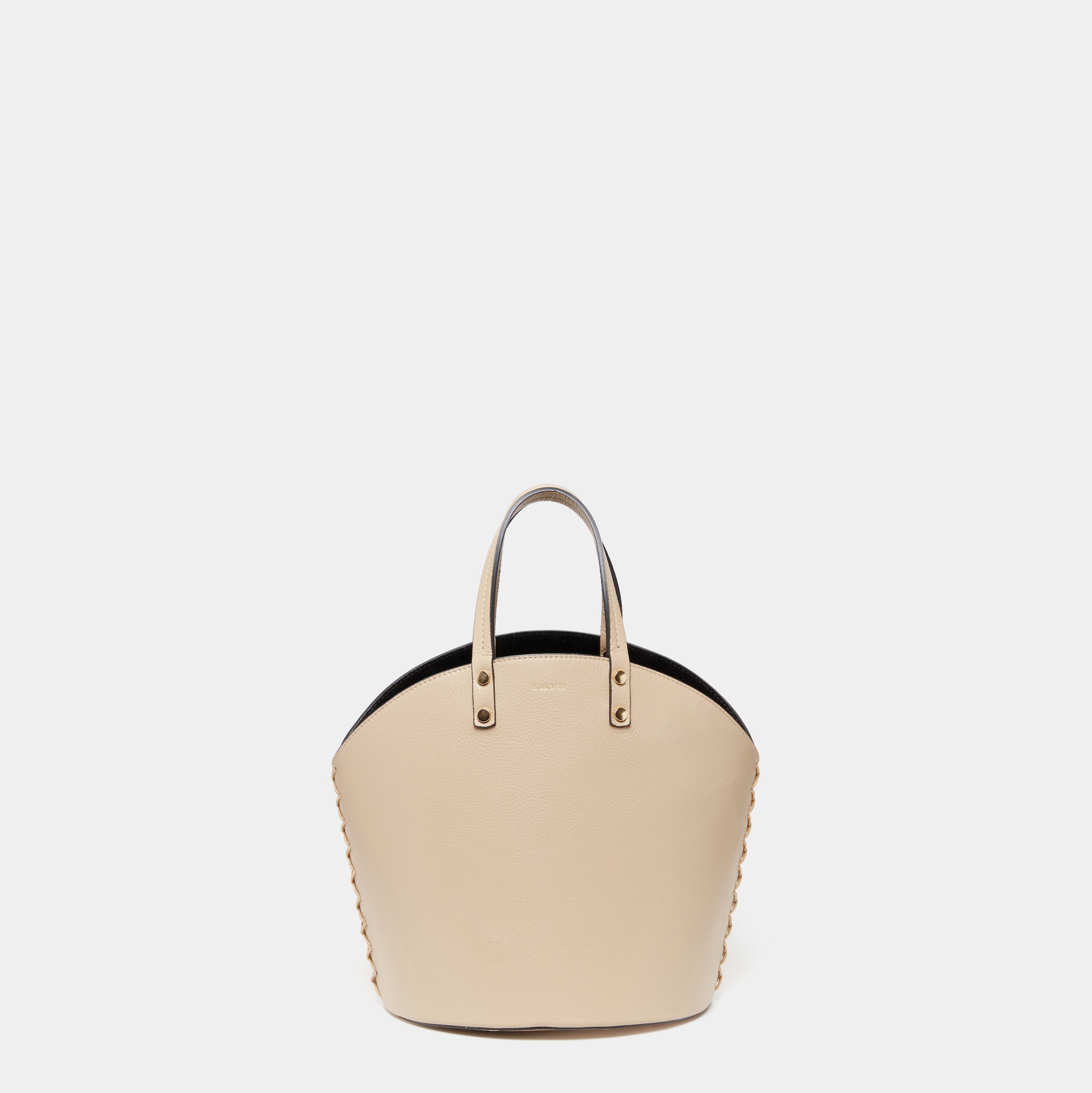 A structured yet sophisticated carryall crafted in premium leather. Featuring a distinctive hand-woven leather detail along the side, this bag adds a refined twist to a minimalist silhouette. The spacious interior includes a practical pocket, while the soft microfibre lining ensures a lightweight, comfortable feel.