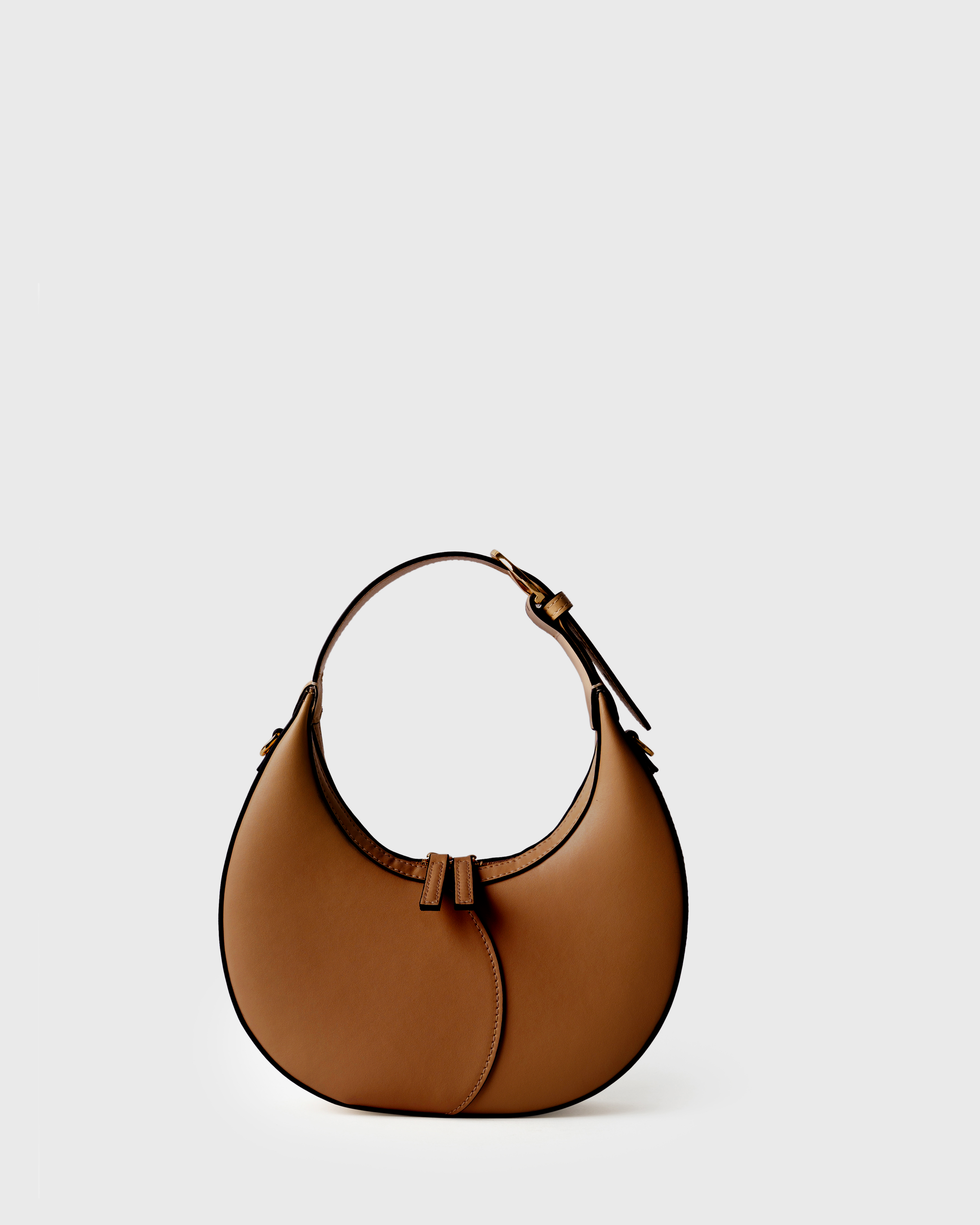 Compact and sophisticated, this crescent-shaped shoulder bag is crafted from smooth leather and embellished with the brand’s signature curved stitching. The minimalist design of both the silhouette and the handle, combined with the adjustable shoulder strap, makes it a true statement of refined elegance.