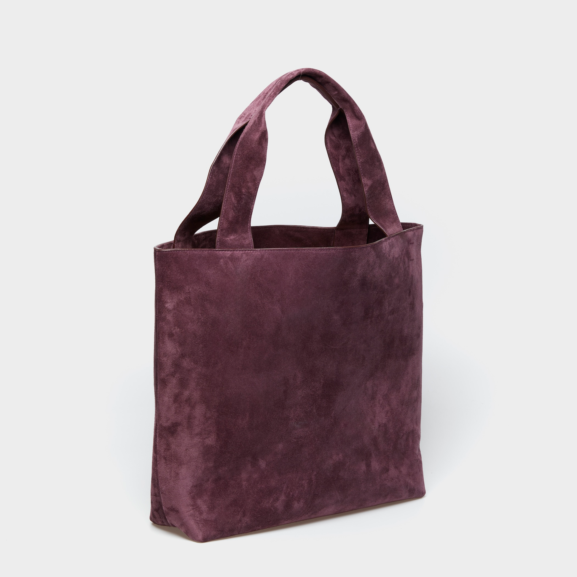 A spacious everyday tote crafted in soft Italian calf suede. Designed with a minimalist silhouette, it features sturdy handles, a zipped internal pocket, and a cotton-blend recycled lining.